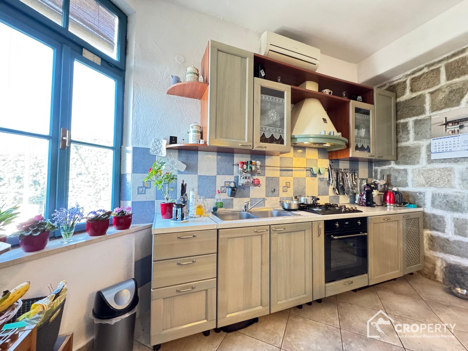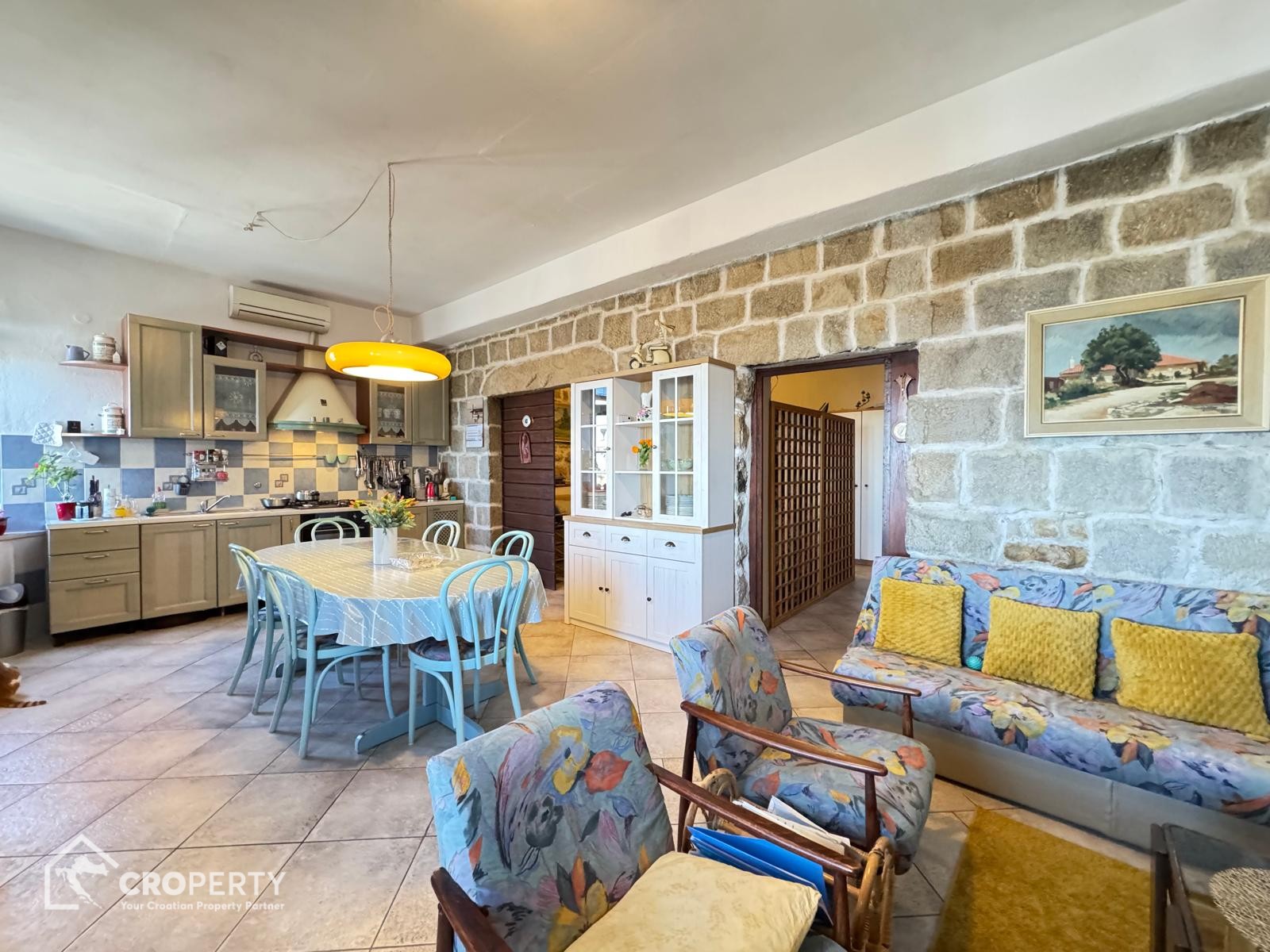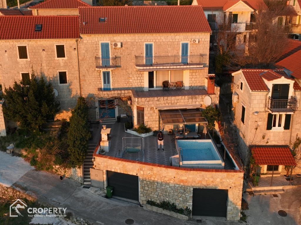 Posredujemo u ekskluzivnoj prodaji prekrasne dalmatinske kamene vile smještene u mirnom primorskom mjestu, idealnom za obiteljski život ili kao investicija za iznajmljivanje. Vila se prostire na tri etaže ukupne stambene površine 660m2 uključujući dvije velike terase, dva balkona i bazen. Sastoji se od tri stambene jedinice od kojih svaka ima zaseban ulaz.