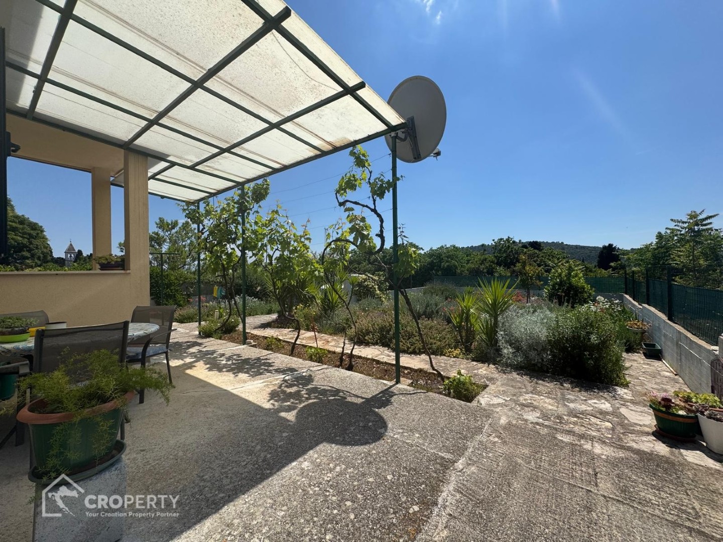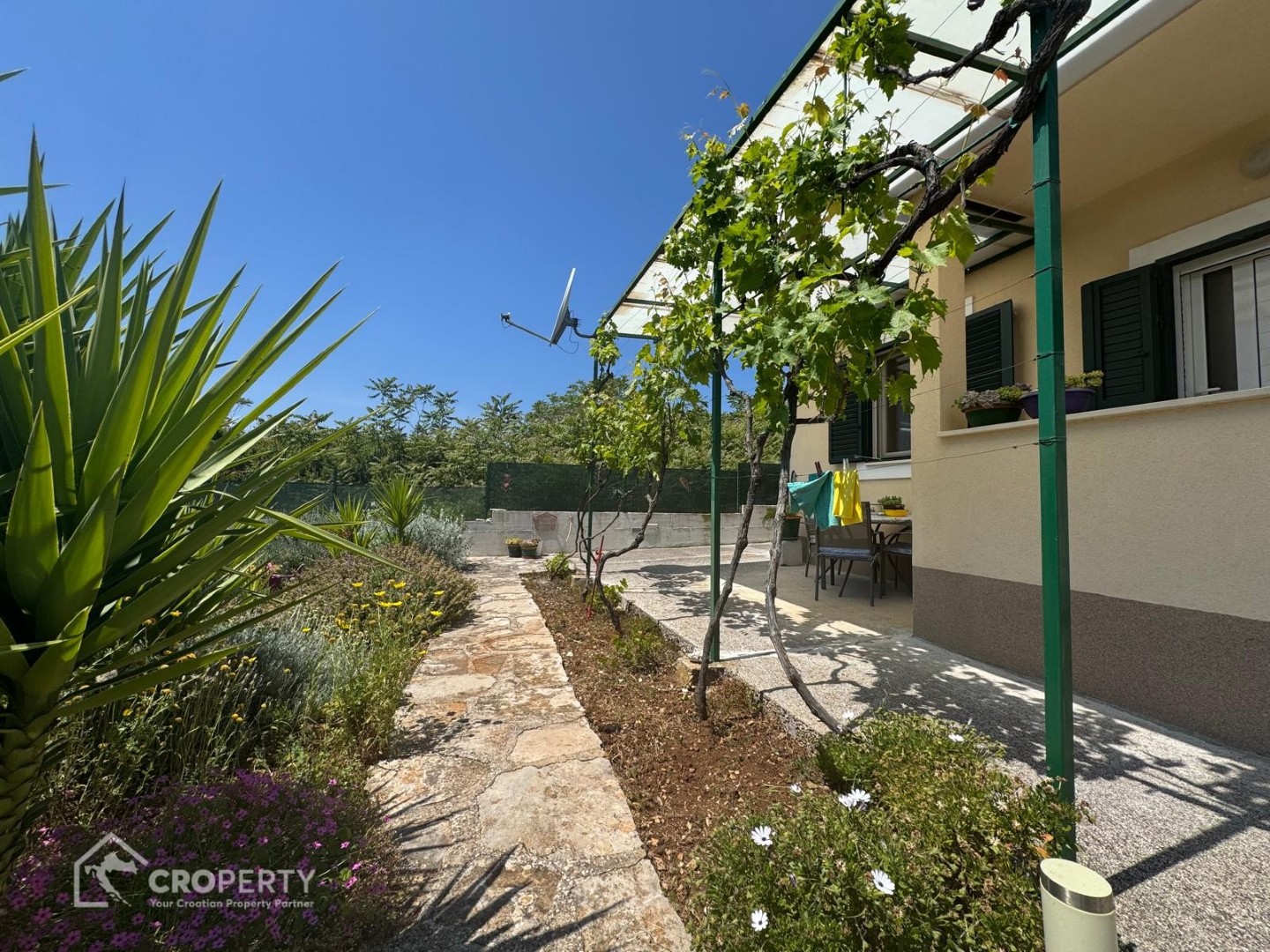 Uživajte u šarmu dobro održavane terase i vrta, idealnih za jutarnju kavu ili večernja druženja okružena mirisima mediteranskog bilja. Natkrivena terasa stvara savršeno okruženje za opuštanje, štiteći vas od znatiželjnih pogleda i sunca, dok vas prirodni okoliš obavija tišinom i skladom.