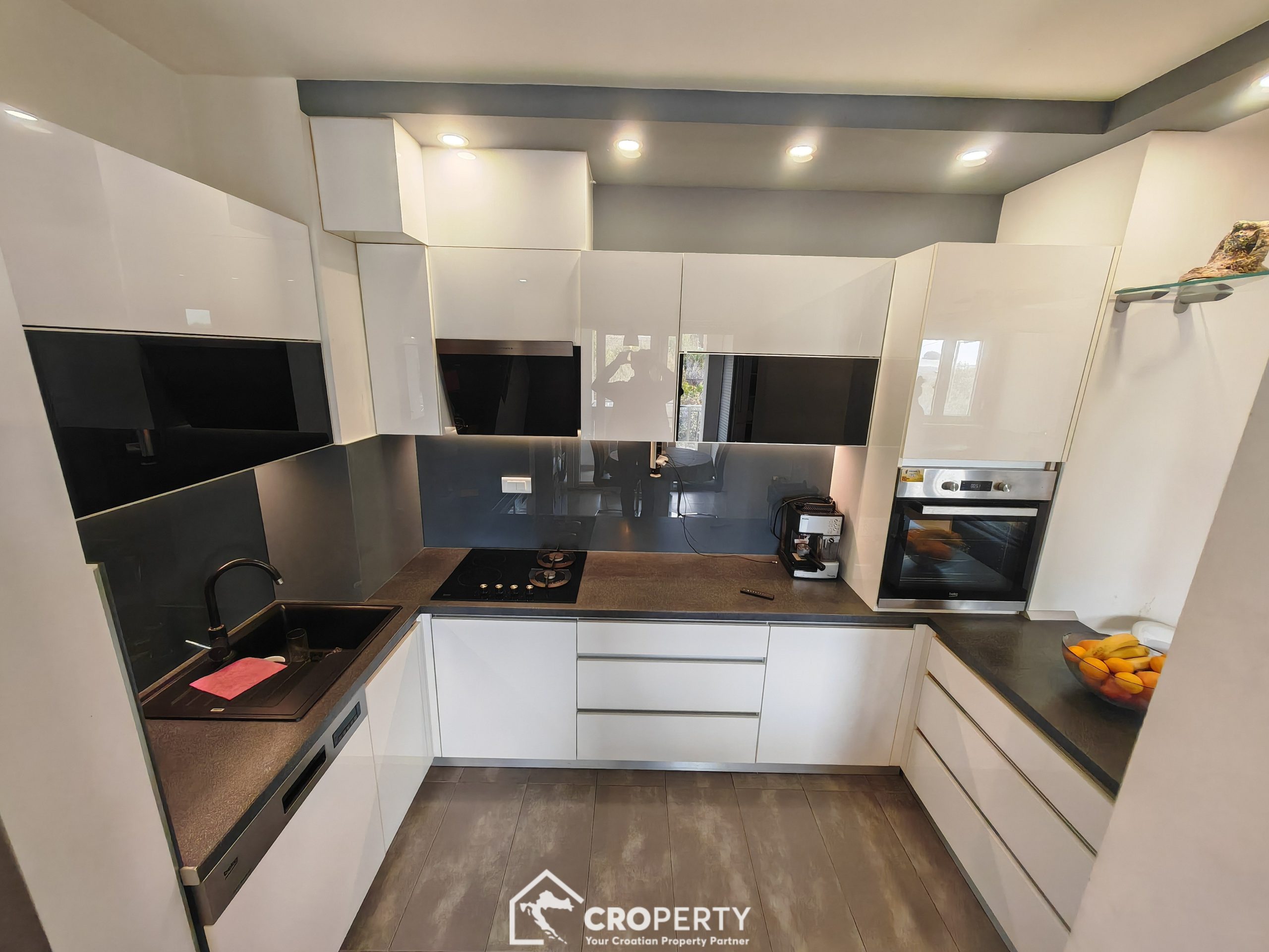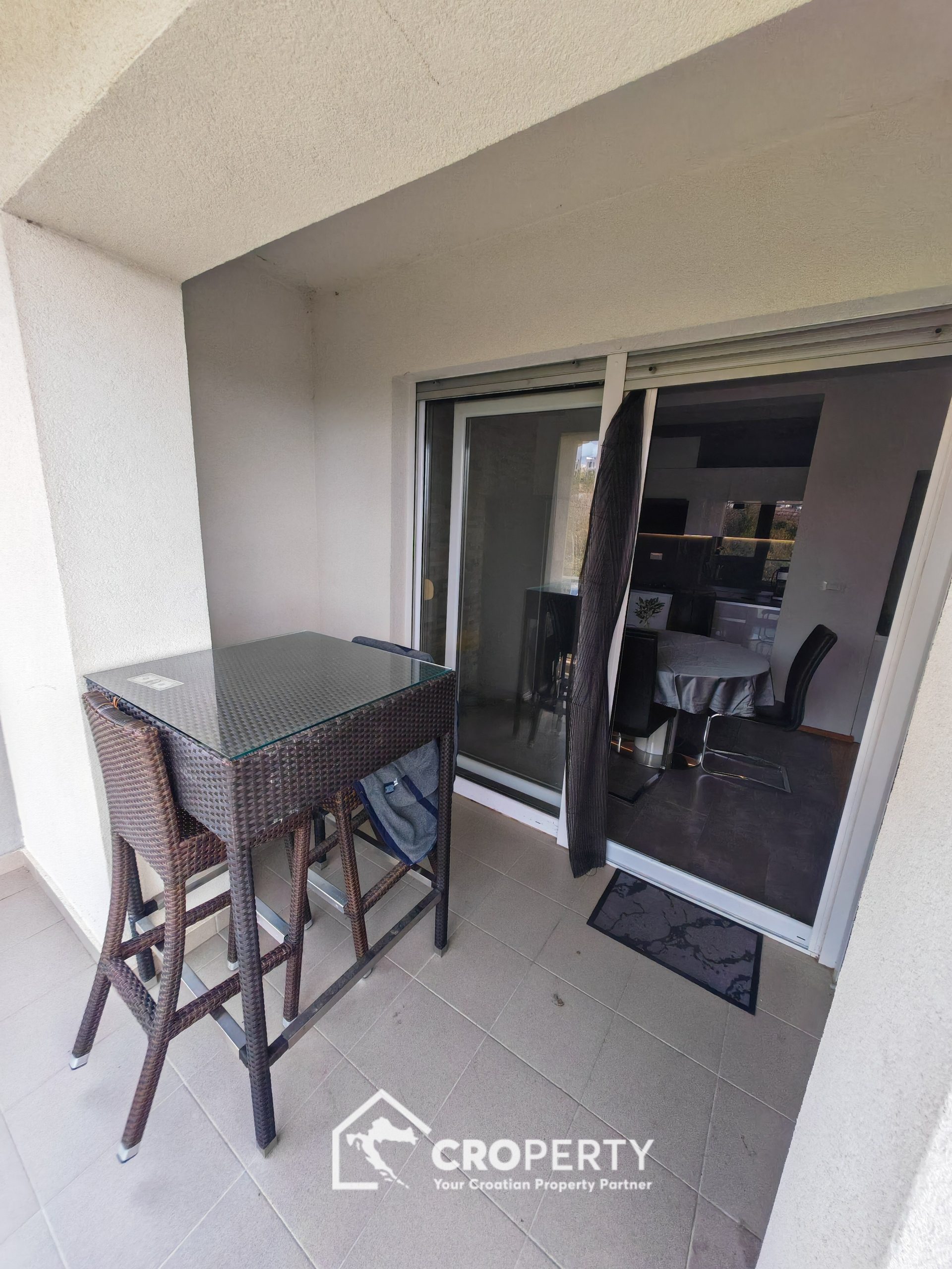 Ovaj stan odlikuje odličan raspored, obilje prirodnog svjetla te visoka kvaliteta uređenja. Prodaje se kompletno namješten, a namještaj je uključen u cijenu.