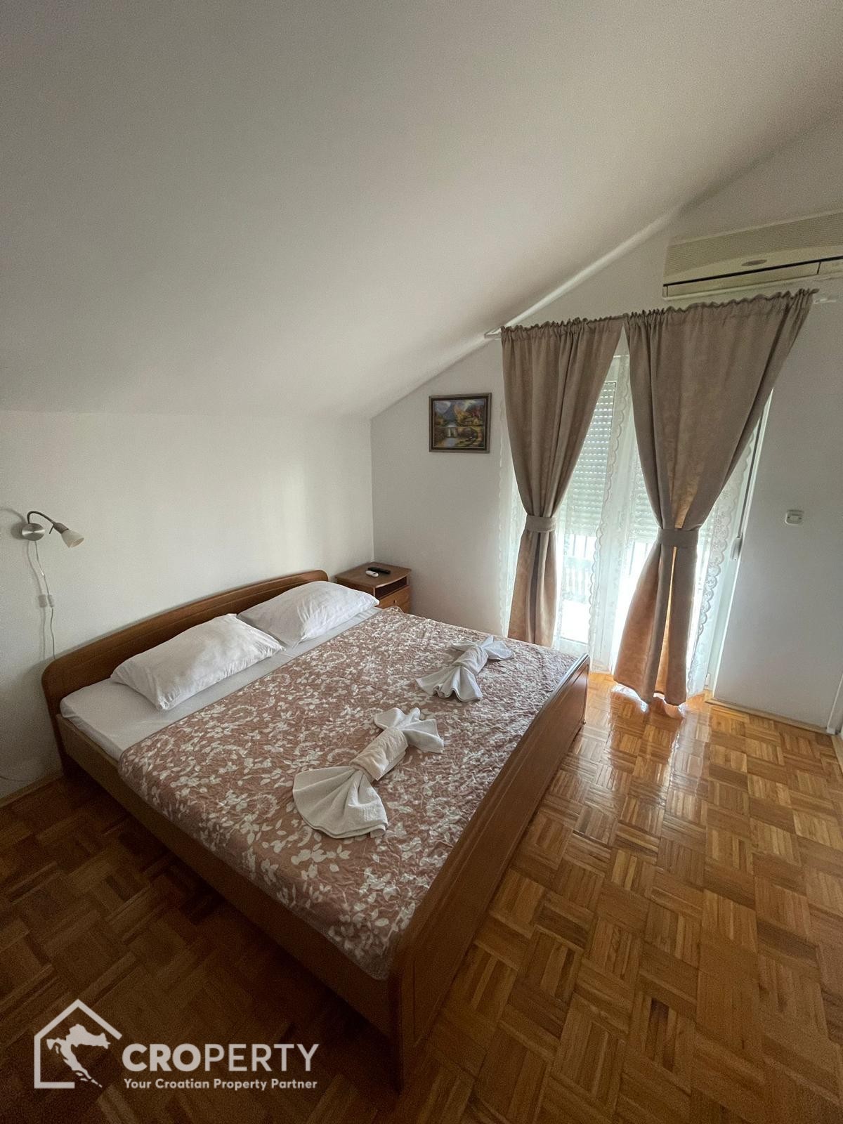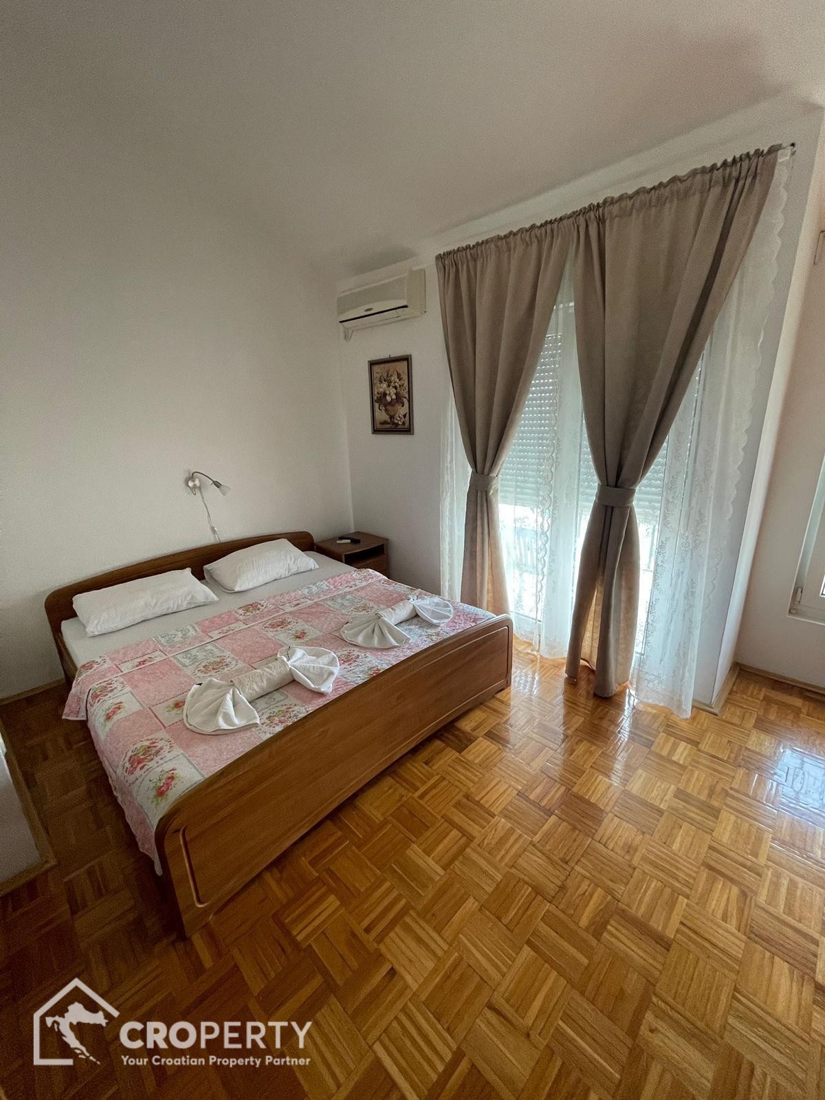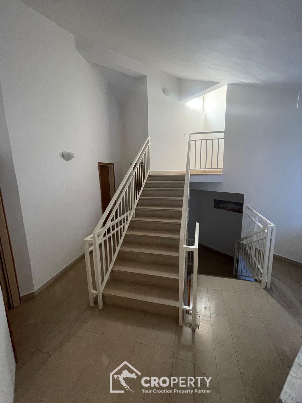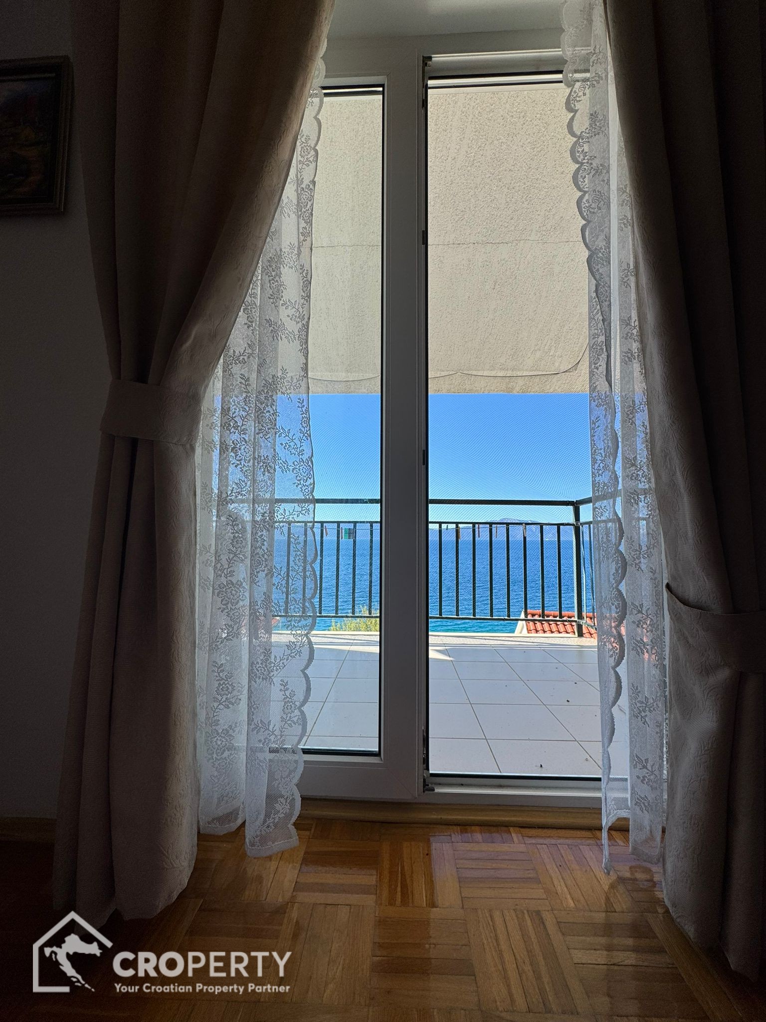 Prostranost, svjetlost i izvanredan pogled na more daju ovoj nekretnini dodatnu vrijednost. U kombinaciji s 7 parkirnih mjesta – rijetkost na obali – ovo je prilika koja se rijetko pojavljuje na tržištu.