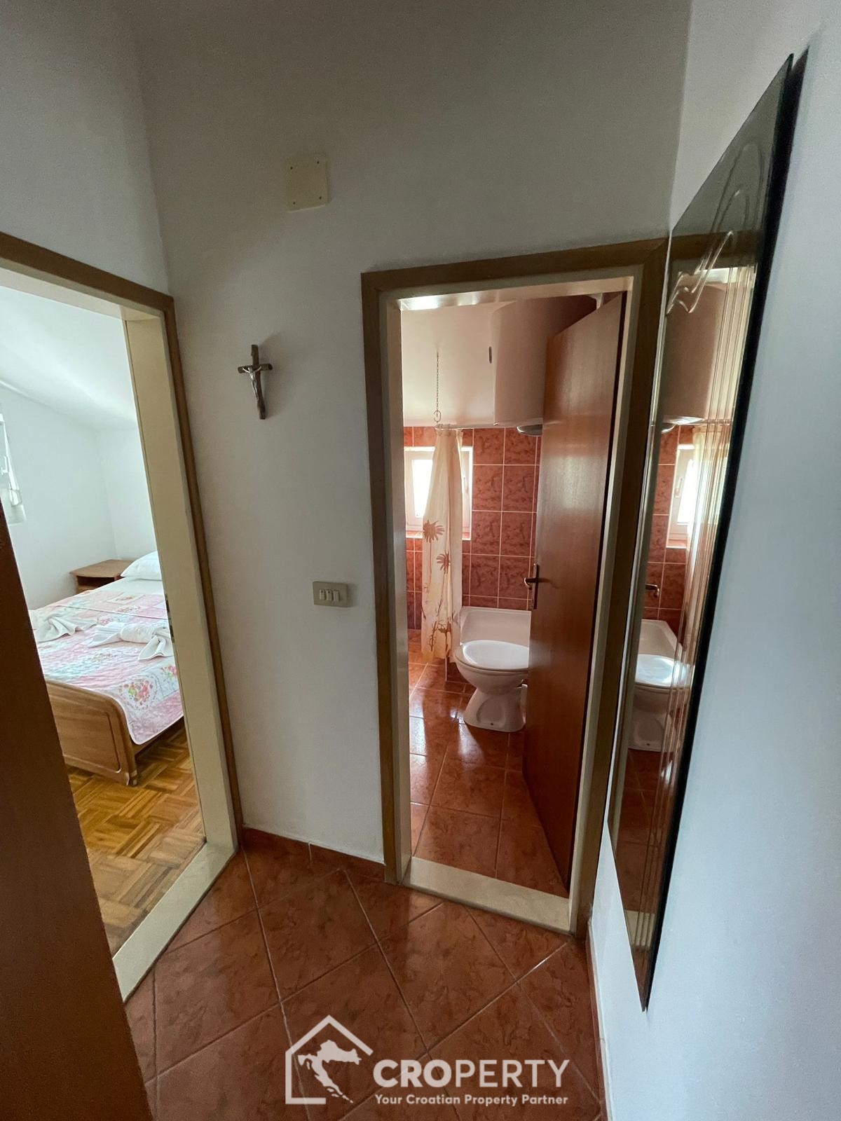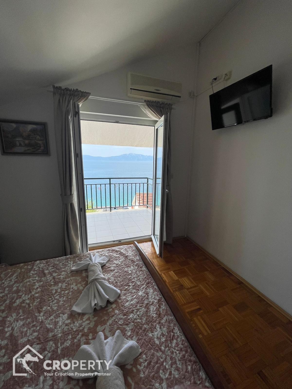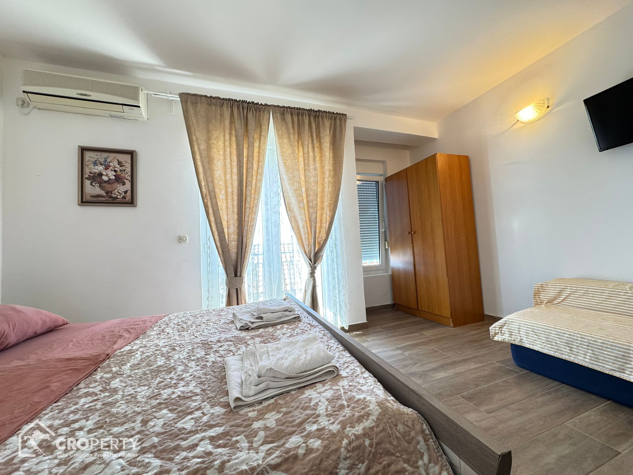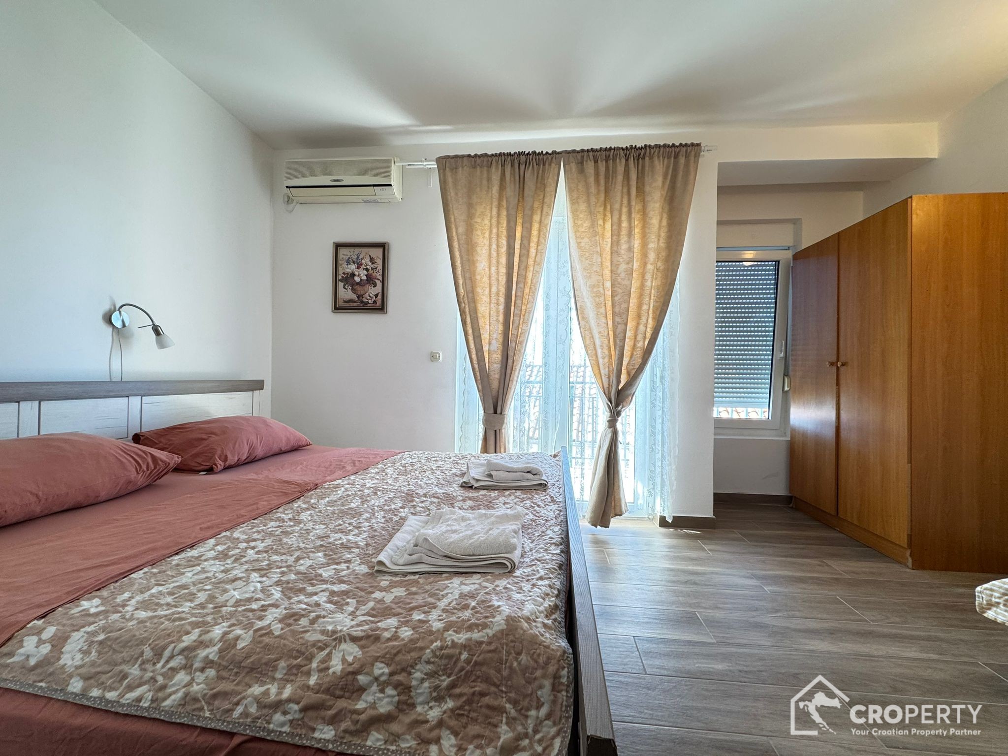 Prostranost, svjetlost i izvanredan pogled na more daju ovoj nekretnini dodatnu vrijednost. U kombinaciji s 7 parkirnih mjesta – rijetkost na obali – ovo je prilika koja se rijetko pojavljuje na tržištu.